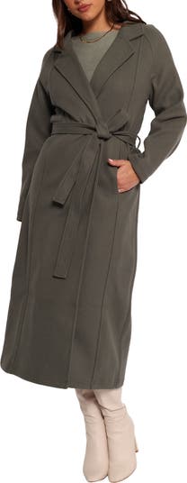 Bundle up for colder weather without compromising on refinement in this cozy coat streamlined with notched lapels and a silhouette-cinching belt.