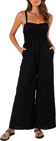 A tiered bodice lends romantic style to this breathable cotton-and-linen jumpsuit equipped with handy side pockets.