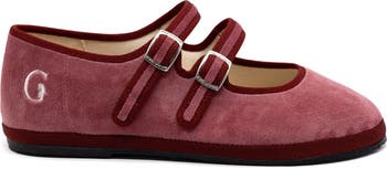 Gondolina reimagines Venetian elegance with the Double Strap Mary Jane Flats, crafted from 100% Italian cotton velvet. Handcrafted by expert Friulian artisans, each pair is a unique masterpiece. A stylish color contrast between the blush pink upper and amaranth grosgrain trim adds elegance and sophistication, while the double Strap detail ensures a secure, customizable fit.