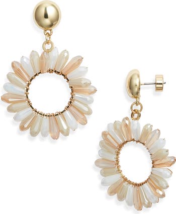 Shimmering crystal petals radiate around these hoop drop earrings finished in a gleaming goldtone frame that amplifies their statement shine.
