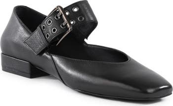 A grommet-studded strap and square toe bring contemporary edge to a versatile mary-jane flat complete with a comfort-cushioned footbed.