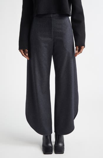 Pieter Mulier brings the delicate romance of unfurling flower petals to these merino-wool pants tailored with folded, open sides that enhance the sculptural volume of the barrel-leg silhouette.