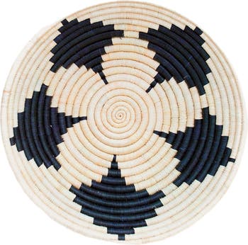 One of our best-selling signature plateau baskets handcrafted in Rwanda with a time-honored weaving technique passed down from generations of artisans. 12" W x 3"H Natural color with black pattern Locally sourced raffia from palm trees Includes a loop on the back for hanging The ideal housewarming gift and the perfect size to be used as a fruit basket, hung in a cluster on a gallery wall, or simply placed as an accent piece in your favorite nook around the house or office.