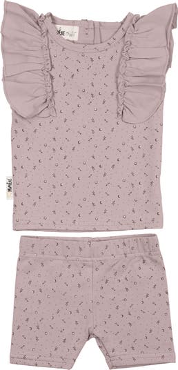 A sweet floral print brings graceful charm to a flutter-sleeve top that's paired with matching shorts.