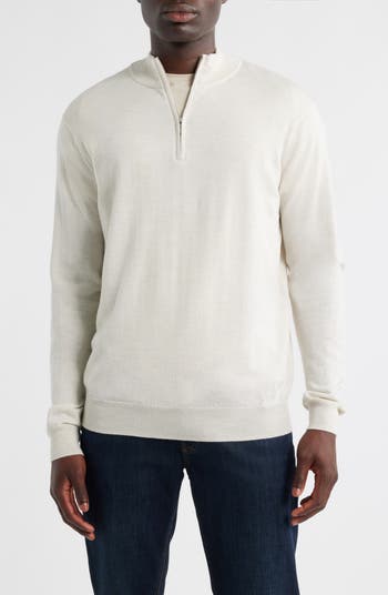 Knit with finely textured stitches from an incredibly soft, breathable merino-wool blend, this sporty quarter-zip sweater is designed to handsomely maintain its shape after each wear.