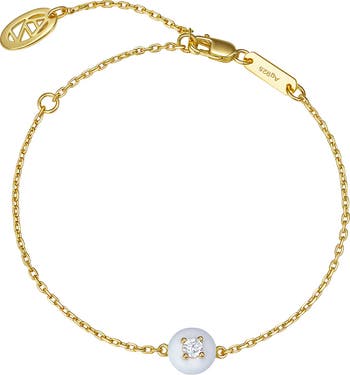 This dainty gold bracelet features a cupcake-inspired design with a sparkling diamond crystalline center, resembling a cherry on top. Available in a range of fun and vibrant colors, its a sweet and playful addition to any little one's jewelry collection. This item comes in our signature pink gift box.