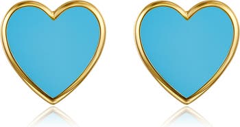 Add a little love to their sparkle! These dainty heart-shaped studs are trimmed in gold with a pop of sky blue enamel -- sweet, simple, and made just for your little one. The perfect first for any mini fashionista! Packaged in our signature pink gift box.