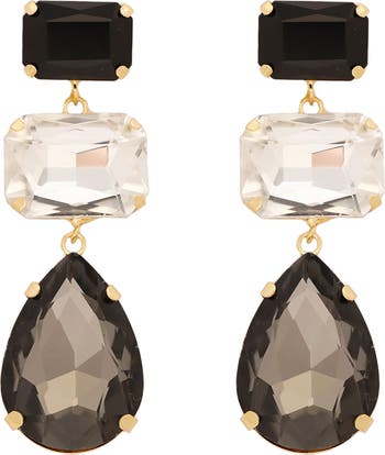 Three colorful stones add eye-catching character to sparkling drop earrings that are ready to make a statement.