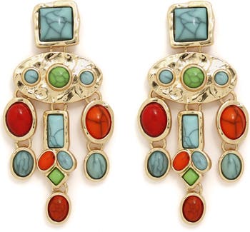 A colorful array of stones decorate this statement drop earring for a vibrant touch to any look.