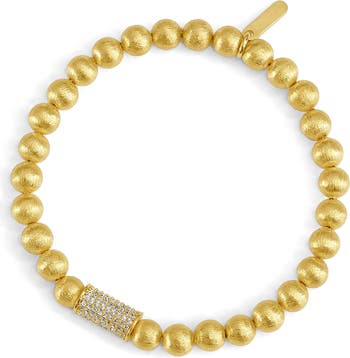Add a some glittery shine to your everyday look with a handcrafted bracelet featuring cubic zirconia and brushed gilded beads.