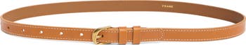 Cinch off your look with this slender belt elevated with a high-shine polished buckle and buttery-soft leather construction traced with contrast topstitching.