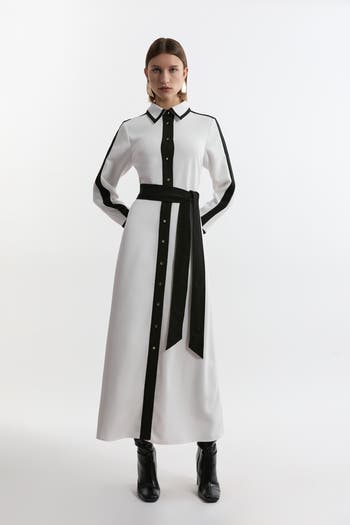 Feel confident in our midi dress, with high quality viscose fabric, featuring a relaxed, figure skimming silhouette, and contrasting colour blocks. Style it with court heels or ankle boots for a look perfect for office days, then wear it with heels for an evening look.