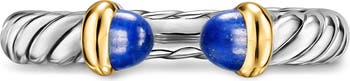 An ornately corkscrew-spiraled texture brings David Yurman's signature aesthetic to this sterling-silver open ring capped with 14-karat yellow-gold accents. Semiprecious stones detailing the open tips add brilliant luster to your look.