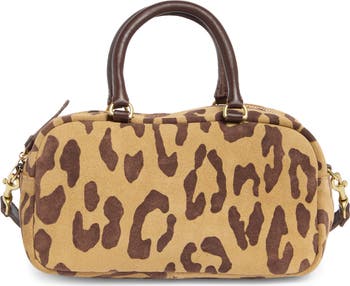 A rounded silhouette inspired by structured bowling bags brings retro charm to this supple suede bag that comes with an optional crossbody strap for hands-free functionality.