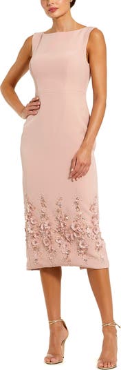 Petite Crepe Sleeveless Midi Dress With Flower Beading