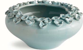 - Cold-finish blue crackle clay bowl creates a calming or coastal asthetic Hand sculpted with each bud carefully and uniquely created then applied Great for console tables or centerpieces. Leave empty or pair with a floral drop-in. Genuine, handcrafted quality adds charm to any décor