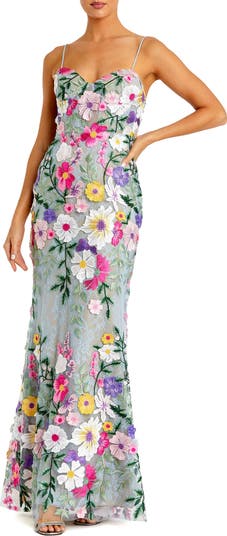 Petite Floral Embroidered Sleeveless Bustier Gown