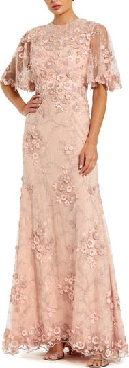 Petite Flutter Sleeve Floral Embroidered Net Gown