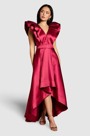 Make an unforgettable entrance at your next special occasion in this captivating midi dress from Coast. The architectural frill sleeves create a dramatic silhouette whilst the plunging V neckline adds a touch of sophisticated allure.
