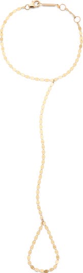 Signature flat-edge links catch the light as they wend around your wrist and hand in this delicate hand chain crafted from 14-karat gold.