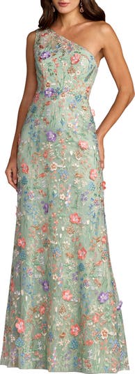 Petite One Shoulder Lace Embroidered Gown