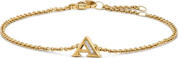 Shining personality defines this inital pendant bracelet that winks with pavé diamonds and polished 18-karat gold.