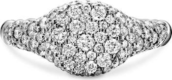 Pave bring brilliant shine to this delicate pinky ring rendered from 18-karat gold and carved with entrancing wave-like patterns.