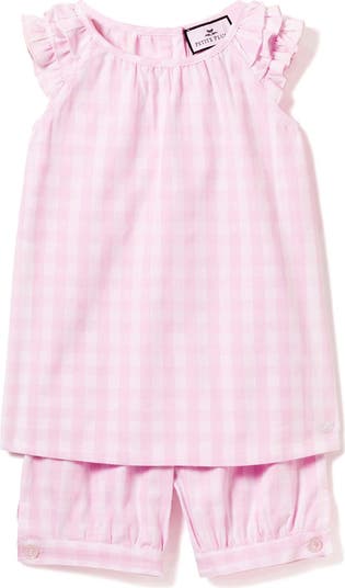 Keep your mini-me nice and comfy in these short pajamas patterned in cheery gingham checks and cut from comfy fabric that's brushed for cuddly softness.