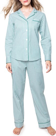 Emerald Ticking Stripe Cotton Twill Pajamas