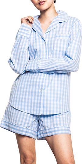 Feel cool and comfy in woven cotton pajamas styled with notched lapels, smooth piping and convenient pockets.