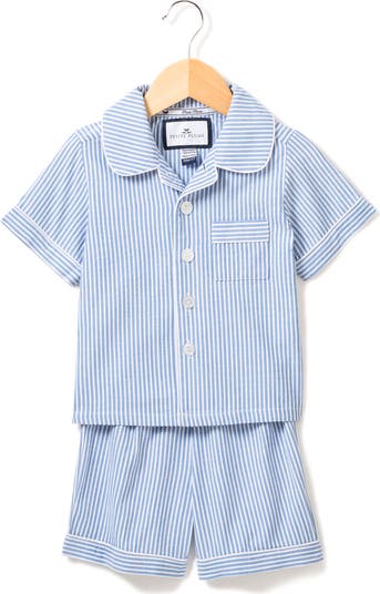 Keep your little one cool and comfy in these short pajamas cut from cotton-blend striped fabric with an airy puckered weave and a cozy brushed softness.