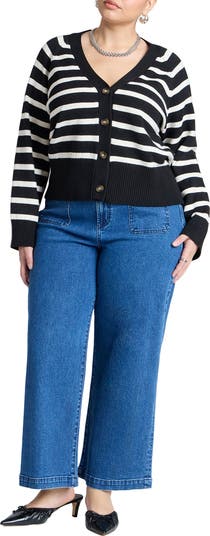 A chic dark wash furthers the elevated look of trouser-inspired jeans featuring a high waist, ankle-length wide legs and a hint of comfy stretch.