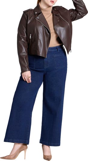 A chic dark wash furthers the elevated look of trouser-inspired jeans featuring a high waist, ankle-length wide legs and a hint of comfy stretch.