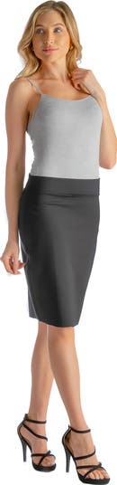 Keep your style sleek and polished with this petite solid color pencil skirt featuring a comfortable elastic waistband and classic knee length cut. Made from soft stretch material this skirt offers a flattering fit that moves with you throughout the day. Perfect for both professional and casual looks its timeless silhouette pairs easily with blouses sweaters or tees. Available in multiple color options this versatile pencil skirt is a must have wardrobe essential.
