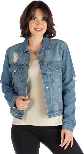 Add a classic touch to your wardrobe with this petite timeless denim jacket. Designed with a functional button up front and a relaxed fit it features long sleeves with cuffs and a structured collar neckline. Perfect for layering over dresses tees or blouses this versatile jacket brings effortless style to any outfit. A must have staple for year round wear.
