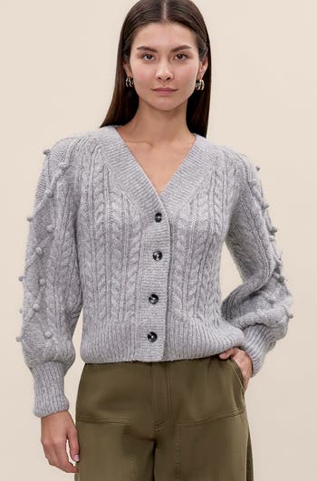 Luxurious alpaca blend shapes this long-sleeve cardigan designed with an elegant V-neckline and sophisticated button front closure. The charming bobble details and cable stitch construction add artisanal appeal to this premium Peruvian-made piece.