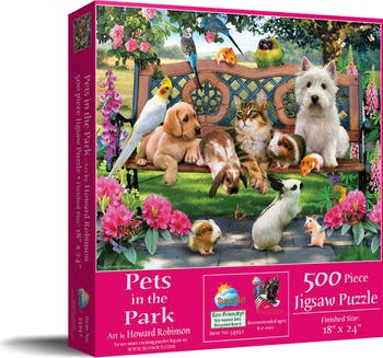 Indulge in intricate artistic bliss and unleash your creativity with the 500 Piece Jigsaw Puzzle by SunsOut, a captivating masterpiece featuring the exquisite artwork by Howard Robinson. This meticulously crafted puzzle incorporates delightful, serene scenes of animals and nature, offering more than just a pastime. With a completed size of 18" x 24", transform this puzzle into a piece of art that you can proudly display in your home or office. SunsOut puzzles reflect unmatched quality and precision, boasting superior interlocking pieces made from high-quality recycled cardboard for easy assembly. Proudly made in the USA, each puzzle is a testament to rigorous manufacturing standards, ensuring the product’s durability and your satisfaction. Moreover, SunsOut puzzles are not just engaging but also eco-friendly, utilizing soy-based inks and recycled materials that limit the impact on our planet. This eco-conscious approach allows you to enjoy the beauty of nature through fully licensed artwork while also preserving it. Peace of mind is ensured with SunsOut’s worry-free guarantee and commitment to excellent customer service, ready to resolve any issue promptly and accurately. This woman-owned small business is dedicated to delivering high-quality products fused with superior service. The puzzle makes a treasurable gift, perfect for animal lovers and adults seeking a relaxing yet stimulating challenge. Rediscover the joy of puzzling and immerse yourself in the enchanting world of animal friends nestled in charming settings with SunsOut!
