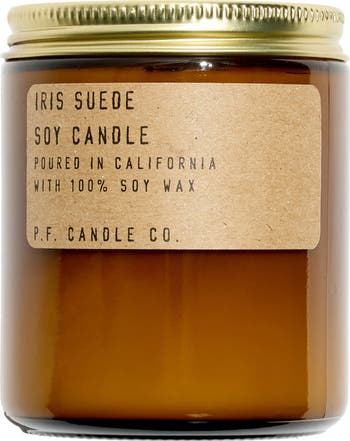 What it is: A candle hand-poured into an apothecary-inspired amber glass jar with a signature label and a brass lid.