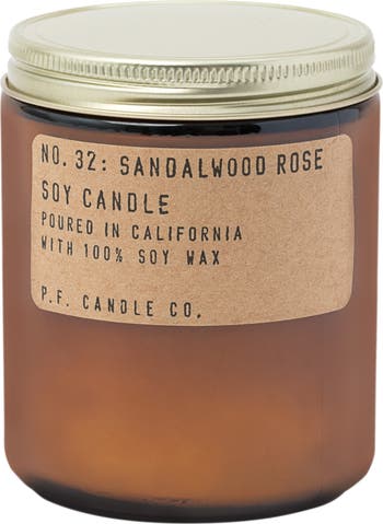 What it is: A candle hand-poured into an apothecary-inspired amber glass jar with a signature label and a brass lid.