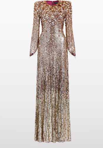 Saturated with sequins and unapologetically bold, the Phara gown redefines modern glamour with a sculptural silhouette and radiant detailing. Designed for women who embrace high-impact style, this full-length evening gown features a clean round neckline and sharp shoulders, lending a statuesque presence. The fitted bodice is richly embellished, with layered sequins that concentrate around the shoulders and chest, creating a powerful, light-catching focal point. From the waist down, the embellishment softens and fades into a fluid skirt, giving the design graceful movement. Crafted for evening events where making an entrance is essential, Phara is perfect for black-tie affairs, galas, and formal red carpet moments. This gown effortlessly balances structure with softness, offering a flattering shape that elongates the body while maintaining ease of wear. A true statement piece for those who want to shine with both confidence and elegance.