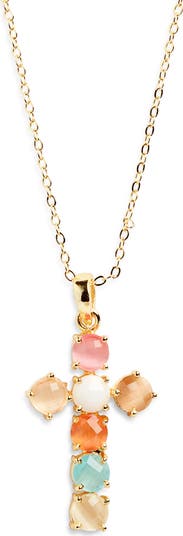 A collection of colorful quartz insect at the center of this sterling silver necklace warmed with 18-karat-gold plating.