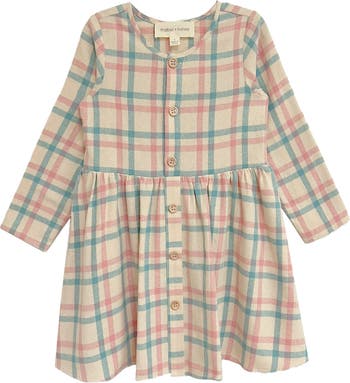 The Phoebe Dress is a playful yet timeless choice for young girls. Featuring a soft plaid pattern in pastel hues of pink, blue, and cream, it?s perfect for creating effortlessly charming looks. Its gathered waist adds a gentle flair, while six wood-inspired buttons down the front bring a touch of rustic elegance. Designed for both comfort and style, this long-sleeve dress invites endless twirls and smiles.