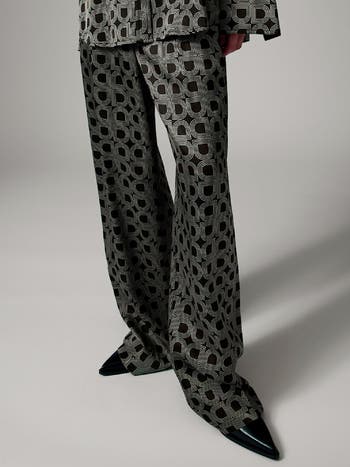 Flowing tailored trousers with fluid drape and soft hand, designed to elongate the silhouette for confident evening style.