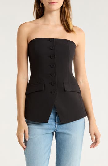 Suiting style comes for your next night out in a vest-inspired bustier top finished with a cutaway hem.
