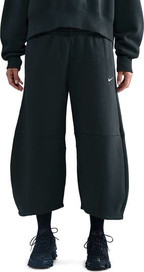 Made from midweight brushed fleece that feels extra soft and has a nice drape, these cropped barrel-leg pants are an on-trend, sporty way to update your activewear.