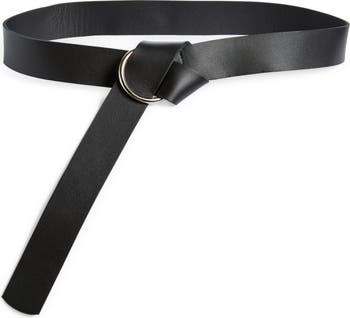 Loop or knot the strap of this leather belt through the O-ring closure and style it anywhere from your hips to waist.
