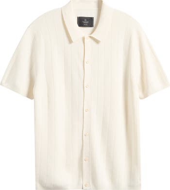 Patterned in subtle ribbing, this cardigan knit from cotton and linen features a pointed polo collar topping a full-button front. Its short sleeves and lightweight feel make it perfect for sunny weather, elevated occasions and days where you just want to smarten a favorite look.