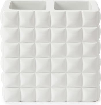 Give your bathroom retreat a luxe, modern aesthetic with the sculptural cubed design of this toothbrush holder highlighted with a polished, glossy finish.