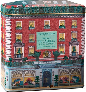 Inspired by Fortnum's famous store in Piccadilly, this enchanting tin contains three types of cookies and plays the delicate chimes of Handel's Water Music.