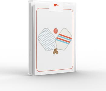 This 8-pack of greeting cards is elegantly illustrated by artist Ingrid Ramus, founder and owner of the Ramus & Co brand. Artwork features pickleball paddles and a ball.. All greeting cards are made in the USA on heavyweight uncoated and locally-sourced and manufactured card stock. Each card is accompanied by a hand-embossed envelope made with heavyweight 95lb paper and a peel-and-stick flap - no licking envelopes here! All Ramus & Co. greeting cards are printed on FSC and SFI certified paper sourced from a regional mill that harnesses 66% of its energy from on-site sustainable sources, such as emission-free hydroelectricity and biomass co-generation from wood waste. All 8 greeting cards come packaged as a boxed set. Husband-and-wife team Calvin and Ingrid Ramus founded Ramus & Company in 2019, in New England, USA. Ingrid, the creative designer behind the brand, originates from Mexico, where she cultivated her skills in fashion and textile design. Drawing from her unique and inquisitive perspective on preppy style, Ingrid prolifically designs whimsical yet classic stationery and lifestyle items.
